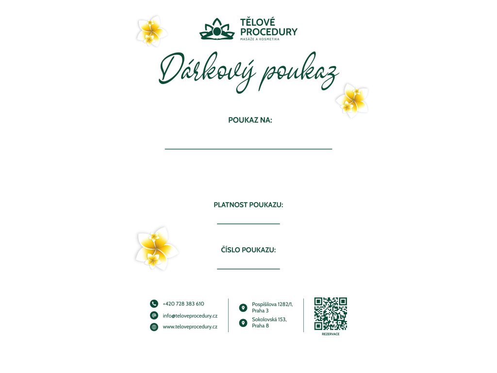 - Rezervace vytvářejte v rezervačním systému na www.teloveprocedury.cz/rezervace